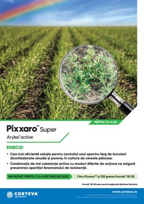 Pachetul Pixxaro™ Super conține 1L Pixxaro™ (fluroxipir 280 g/L și halauxifen-metil 12 g/L, cunoscută sub denumirea de brand Arylex™ Active, prima moleculă care aparține noii clase Arylpicolinate) și 120 g Frontal 50 SX (500 g/kg tribenuron metil), fiind destinat pentru o suprafață de 3,2-4 hectare, în funcție de gradul de infestare, pentru combaterea buruienilor dicotiledonate anuale și perene din culturile de cereale atât de toamnă cât și de primăvară: grâu, grâu durum, orz, orzoaică, triticale și secară. Atenție – nu se utilizează la cultura de ovăz!