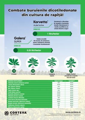 Pentru aplicarea în primăvară, compania Corteva Agriscience vă pune la dispoziție cea mai avansată soluție tehnologică pentru controlul buruienilor dicotiledonate – erbicidul KORVETTO™, erbicidul nr. 1 pentru controlul din primăvară al buruienilor dicotiledonate din cultura de rapiță.