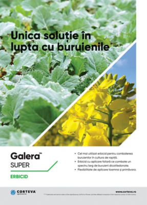 De aceea, compania Corteva Agriscience va pune la dispozitie cea mai buna solutie pentru controlul buruienilor dicotiledonate - erbicidul Galera ™ Super. Este un erbicid cunoscut, care are in compozitie 3 substante active (240 g/l clopiralid + 80 g/l picloram + 40 g/l aminopyralid) si este utilizat de toti fermierii profesionisti, cultivatori de rapita. Este cea mai sigura metoda de a scapa de buruienile dicotiledonate, atat anuale cat si perene, care se poate aplica toamna sau primavara.