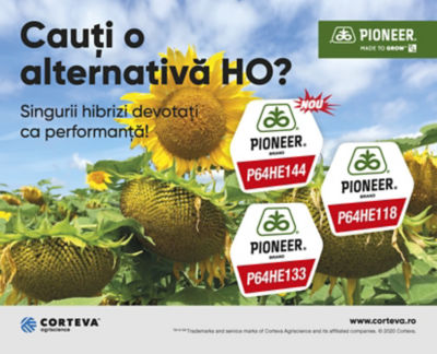 Compania Corteva pune la dispoziția fermierilor un portofoliu de 3 hibrizi HO Express®: P64HE118, P64HE133 și P64HE144, hibrizi ce au un conținut de acid oleic de peste 90% și vin cu un avantaj major din acest punct de vedere - minim 5% acid oleic peste hibrizii competitori.