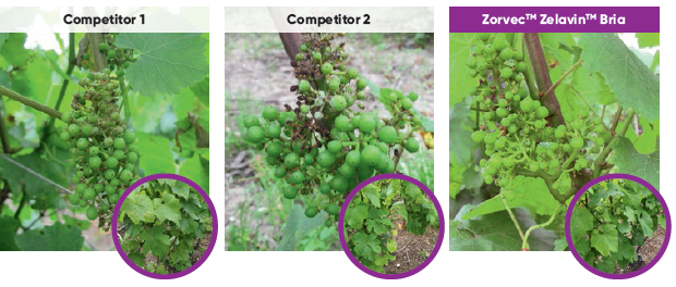 • Zorvec™ Zelavin® Bria oferă o protecție excepțională a frunzelor prezente în momentul aplicării tratamentului și a celor în creștere, menținând sănătatea culturii și nivelul ridicat al producției.