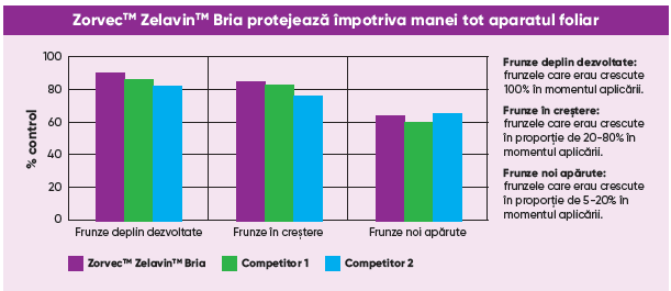 • Experiențele efectuate în diverse țări cu produsul Zorvec™ Zelavin® Bria au demonstrat un control excepțional la mană comparativ cu produsele existente în acest moment pe piață.