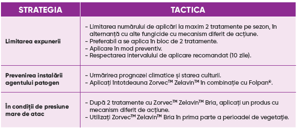 • Pentru evitarea apariției fenomenului de rezistență, Corteva Agriscience a ales Folpan® (Folpet) ca partener de amestec cu Zorvec™ Zelavin®.