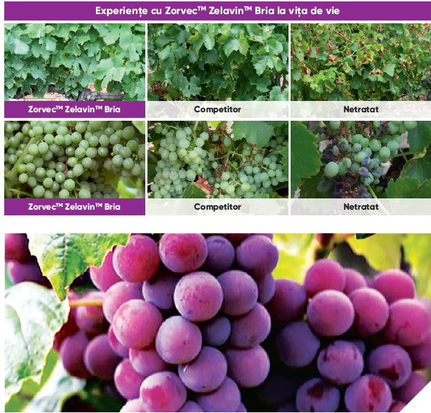 • Cu fungicidul Zorvec™ Zelavin® Bria viticultorii pot îmbunătăți controlul manei la vița-de-vie, atingând standarde calitative superioare.