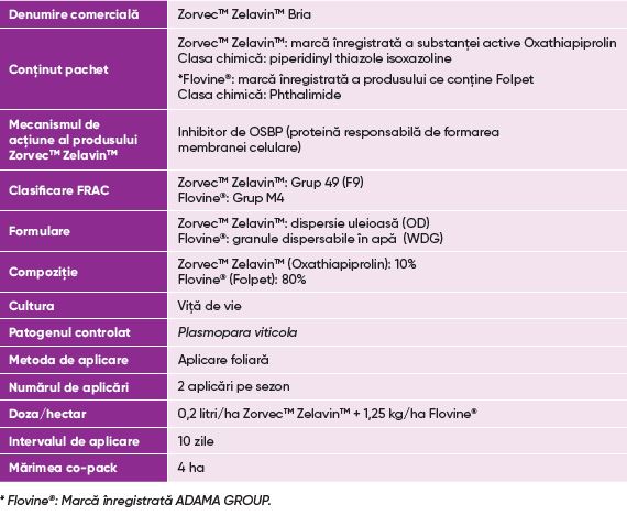 • Zorvec™ Zelavin® Bria aparține unei noi familii chimice de fungicide pentru combaterea bolilor cauzate de ciupercile oomycete.