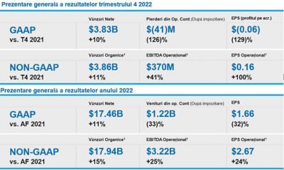 Pierderea GAAP din operațiunile continue după impozitul pe profit a fost de 41 milioane USD în trimestrul al patrulea 2022, comparativ cu veniturile de 155 milioane USD în trimestrul patru 2021. EBITDA operațional1 pentru trimestrul al patrulea a fost de 370 milioane USD, în creștere cu 41% față de anul precedent.