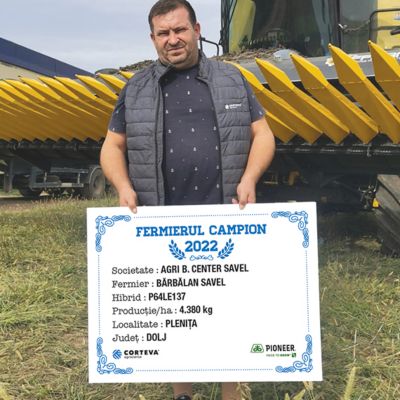 Una dintre cele mai bune producții din județul Dolj le-a obținut domnul Săvel Bărbălan. Este vorba despre o producție de 4.380 kg/ha obținută cu hibridul P64LE137. “Lucrăm în cadrul a trei societăți 1.160 ha, iar floarea-soarelui am avut anul acesta pe aproximativ 400 ha. Planta premergătoare a fost grâul, astfel că după recoltatul acestuia, terenul a fost scarificat și apoi arat, iar în primăvară a fost pregătit cu combinatorul. Anul acesta fost primul an în care nu am putut administra niciun fel de îngrășământ complex. Semănatul l-am început pe 4 martie și a durat cca. o săptămână și jumătate. La semănat am administrat uree - 200 kg/ha, apoi am erbicidat o singură dată în stadiul de 4-8 frunze, am efectuat o prașilă mecanică și am mai fertilizat în vegetație cu încă 100 kg/ha de uree. Am aplicat un tratament cu fungicid și insecticid și am mai avut o trecere cu un aminoacid. Aceasta a fost toată tehnologia și pot spune că nu am avut niciun fel de problemă cu hibridul P64LE137. A fost primul an în care l-am semănat, dar am obținut o producție foarte bună și de aceea anul viitor îl voi semăna pe aproximativ 200 ha”, a punctat fermierul campion.