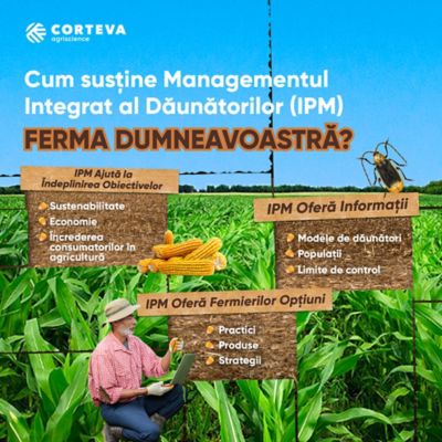 De când există agricultura, fermierii au fost nevoiți să prevadă acțiunea dăunătorilor pentru a putea să ne pună mâncare pe masă. Dăunătorii—termen care cuprinde insecte, buruieni, nematozi și boli care afectează productivitatea și calitatea producției agricole—sunt o amenințare constantă. Fermierii au căutat întotdeauna modalități noi, mai bune, de combatere a dăunătorilor prin practici care echilibrează calitatea culturilor și îngrijirea adecvată a pământului. În ziua de azi, multe dintre aceste practici se încadrează în termenul de management integrat al dăunătorilor sau IPM, un proces științific de luare a deciziilor pentru combaterea dăunătorilor. Strategiile IPM minimizează impactul asupra mediului al practicilor de combatere a dăunătorilor și maximizează posibilitatea fermierilor de a îmbunătăți rentabilitatea economică a culturilor. Cu multe modalități eficace de combatere a dăunătorilor, IPM le oferă fermierilor posibilitatea de a alege cele mai bune soluții pentru situația lor.