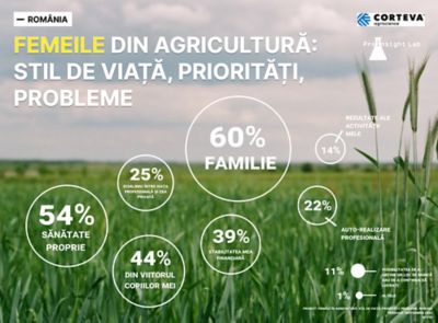 Compania internațională de cercetare și dezvoltare agricolă Corteva Agriscience a dezvăluit rezultatele studiului asupra stilului de viață, a priorităților și a provocărilor cu care se confruntă femeile din România care lucrează în agricultură în viața de zi cu zi. Studiul condus de Corteva a urmărit să înțeleagă mai bine nivelul discriminării de gen și să creeze o înțelegere aprofundată din care să se poată măsura progresul în sectorul agricol românesc.