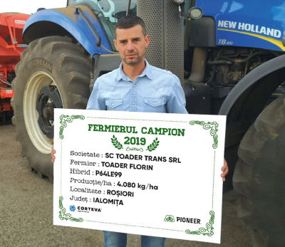 Și în județul Ialomița, hibrizii de porumb, marca Pioneer® au oferit rezultate foarte bune la proba cântarului. Unul dintre fermierii mulțumiți de producția obținută datorită hibridului P64LE99 este Florin Toader din localitatea Roșiori. “Lucrez 930 ha, floarea-soarelui am avut pe 130 ha, iar planta premergătoare a fost porumbul. Am obținut o producție de 4.080 kg/ha cu hibridul P64LE99. Trenul a fost arat din toamnă, apoi în primăvară am fertilizat cu 250 kg/ha de îngrășământ complex triplu 15 și am încorporat cu combinatorul. Am semănat în aprilie, 70.000 b.g/ha, și atunci am mai administrat 200 kg/ha de azot. Am erbicidat preemergent și apoi cu Express® 50 SG, cultura a mai primit un fungicid în stadiul de 6-8 frunze și un îngrășământ foliar. Am început recoltatul la finalul lunii august, iar în ceea ce privește următoarea campanie, este destul de dificil de estimat ce suprafață voi semăna. De obicei semăn până în 150 ha cu floarea-soarelui, însă acum am semănate 250 ha cu rapiță, dar a răsărit doar pe 60 ha, astfel că e posibil să cresc suprafața cu floarea-soarelui și voi alege în principiu același hibrid”, a declarat agricultorul.