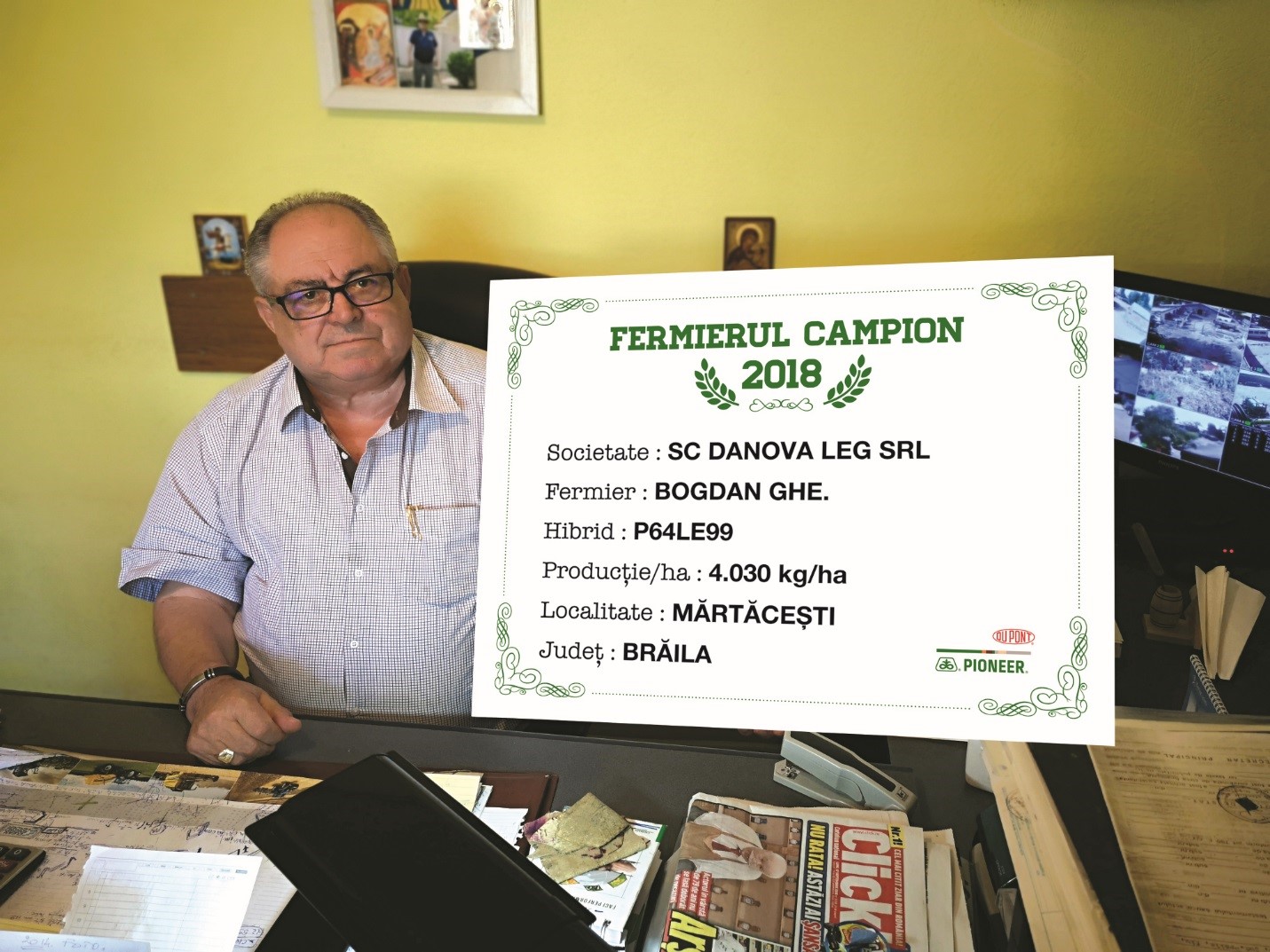 Bogdan Gheorghe este un alt fermier campion la floarea-soarelui din județul Brăila, care lucrează 450 ha, iar floarea-soarelui a semănat în acest an pe 80 ha. Hibridul P64LE25 i-a asigurat 4.030 kg/ha. “Am semănat floarea-soarelui după grâu, așa că după recoltat am erbicidat total și am arat la 25-30 cm. În primăvară am pregătit terenul cu discul și combinatorul, am aplicat încă un erbicid și am semănat la începutul lunii aprilie, când am dat și îngrășăminte -180 kg/ha. Am mai aplicat un erbicid Express și unde a fost cazul un antigramineic. Aceasta a fost toată tehnologia”, a punctat agricultorul. Acesta a mai adăugat faptul că anul viitor va semăna floarea-soarelui pe aproximativ 100 ha, toată suprafața cu hibridul P64LE25 pentru că mereu a obținut producții foarte bune.