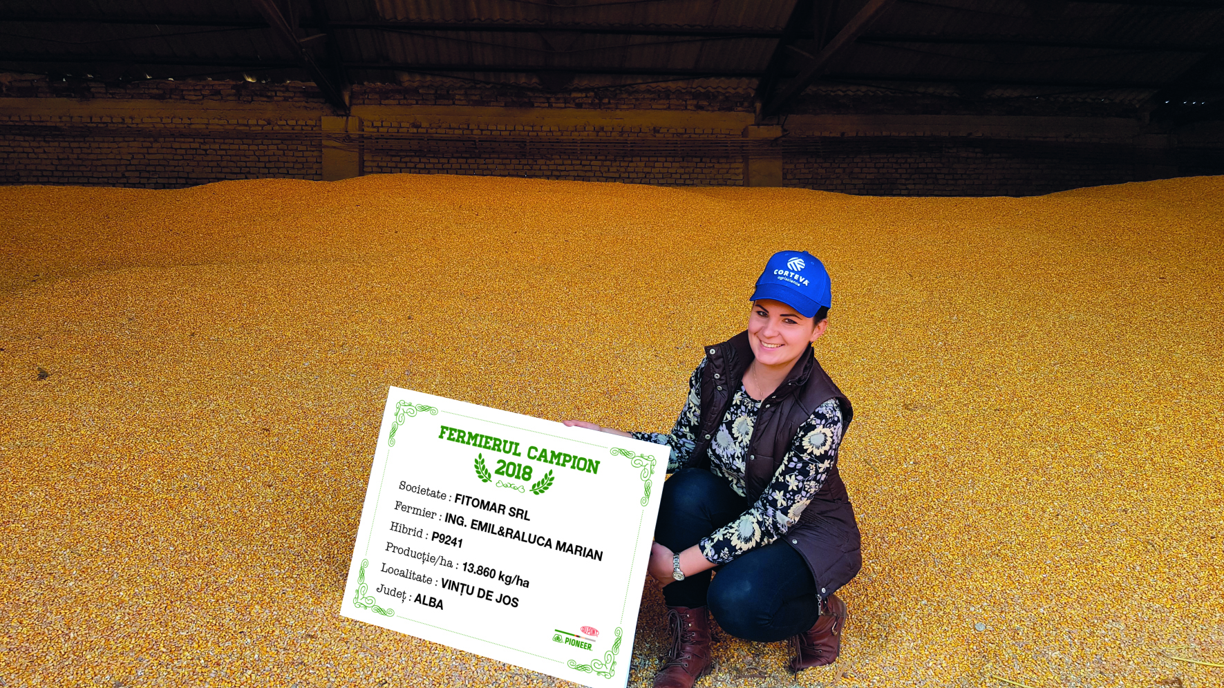 În cadrul societății Fitomar Raluca Marian a obținut 13.860 kg/ha cu hibridul P9241. “Lucrăm 1.000 ha, porumb am avut anul acesta pe 275 ha, iar plantă premergătoare a fost grâul. Am arat în luna august la o adâncime de 28 cm, pregătirea terenului a avut loc primăvara, atunci când am aplicat 280 kg/ha de îngrășăminte complexe 16.16.16 și am încorporat cu combinatorul. Începând cu 13 aprilie am semănat 68.000 b.g/ha și tot atunci am aplicat și azotat de amoniu – 200 kg/ha. Cultura a primit două erbicide și am recoltat începând cu 8 octombrie”, a precizat Raluca Marian, care a adăugat faptul că anul viitor va semăna cu porumb 270 ha.