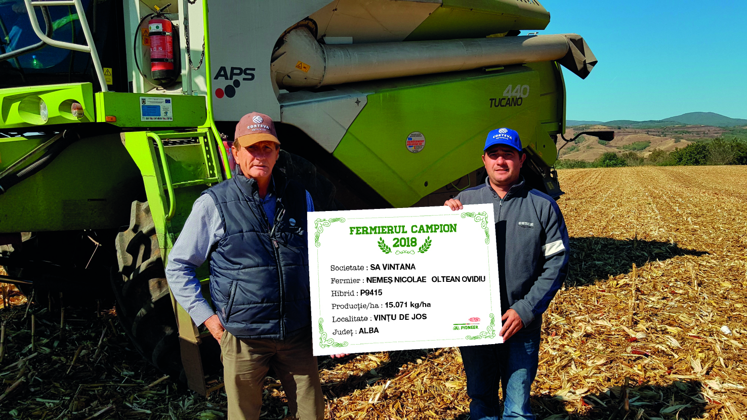 Tot în județul Alba, în cadrul societății Vintana hibridul P9415 le-a asigurat fermierilor Nicolae Nemeș și Ovidiu Oltean o producție de 15.071 kg/ha.