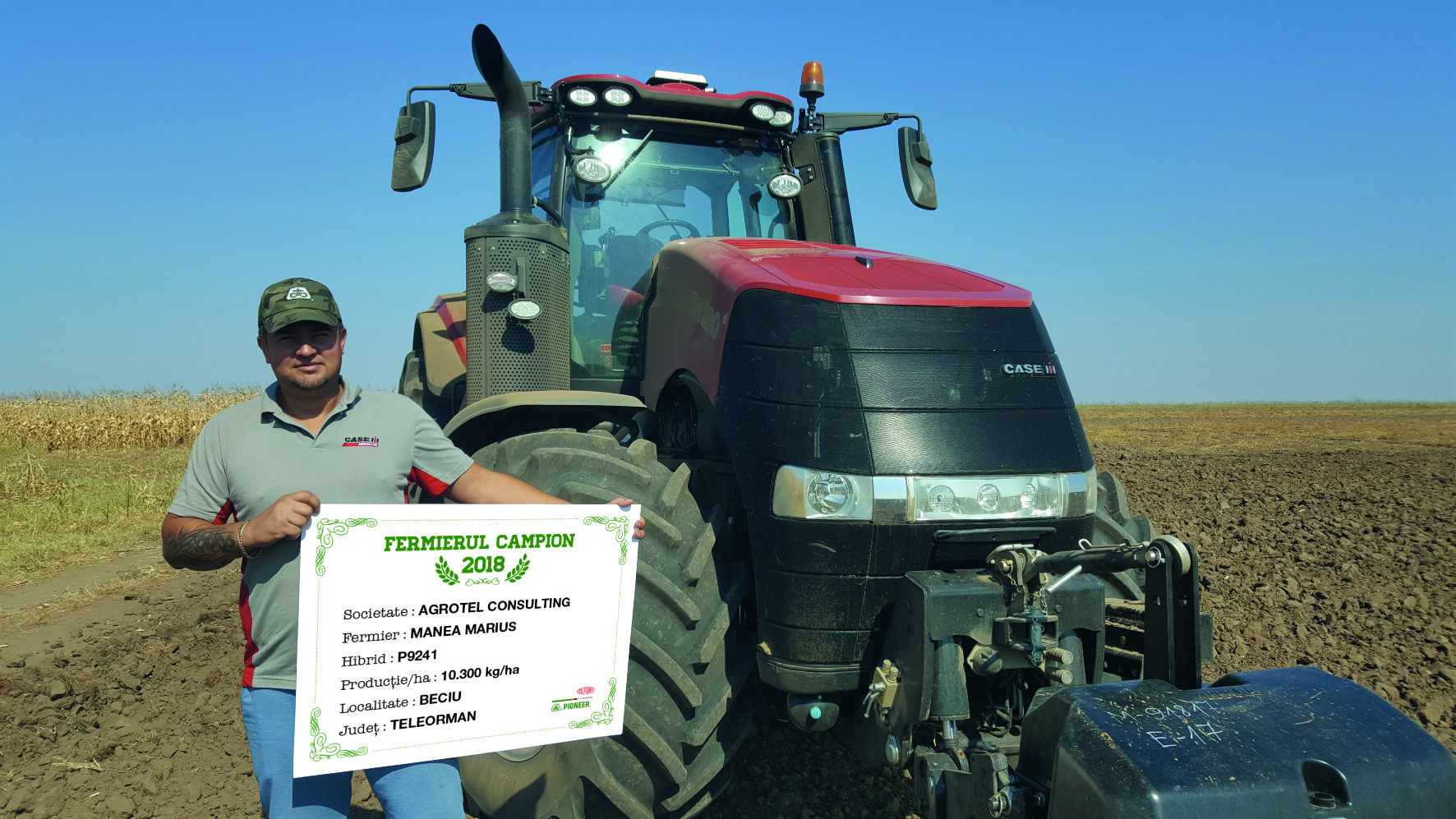 Marius Manea este un alt fermier campion la cultura porumbului din județul Teleorman. În cadrul a două societăți a semănat în acest an 100 ha cu porumb, după rapiță și grâu. A obținut 10.300 kg/ha cu hibridul P9241. “În toamnă am arat sau scarificat, după caz, iar în primăvară am discuit și am efectuat o trecere cu combinatorul. Apoi am semănat în perioada 10-15 aprilie și am ales o densitate mai mică – 58.000 b.g din cauza secetei. Am fertilizat cu 200 kg/ha de uree, o parte din cultură a primit erbicid preemergent, iar în funcție de solă, plantele au primit în total unul sau două erbicide. În faza de 8-10 frunze am aplicat un insecticid și un biostimulator, iar jumătate din suprafață a fost și prășită. Am recoltat la sfârșitul lunii august, iar în următoarea campanie intenționez să semăn cel puțin 120 ha cu porumb și am ales hibrizii P9241, P9903 și P9537 ”, a declarat agricultorul.