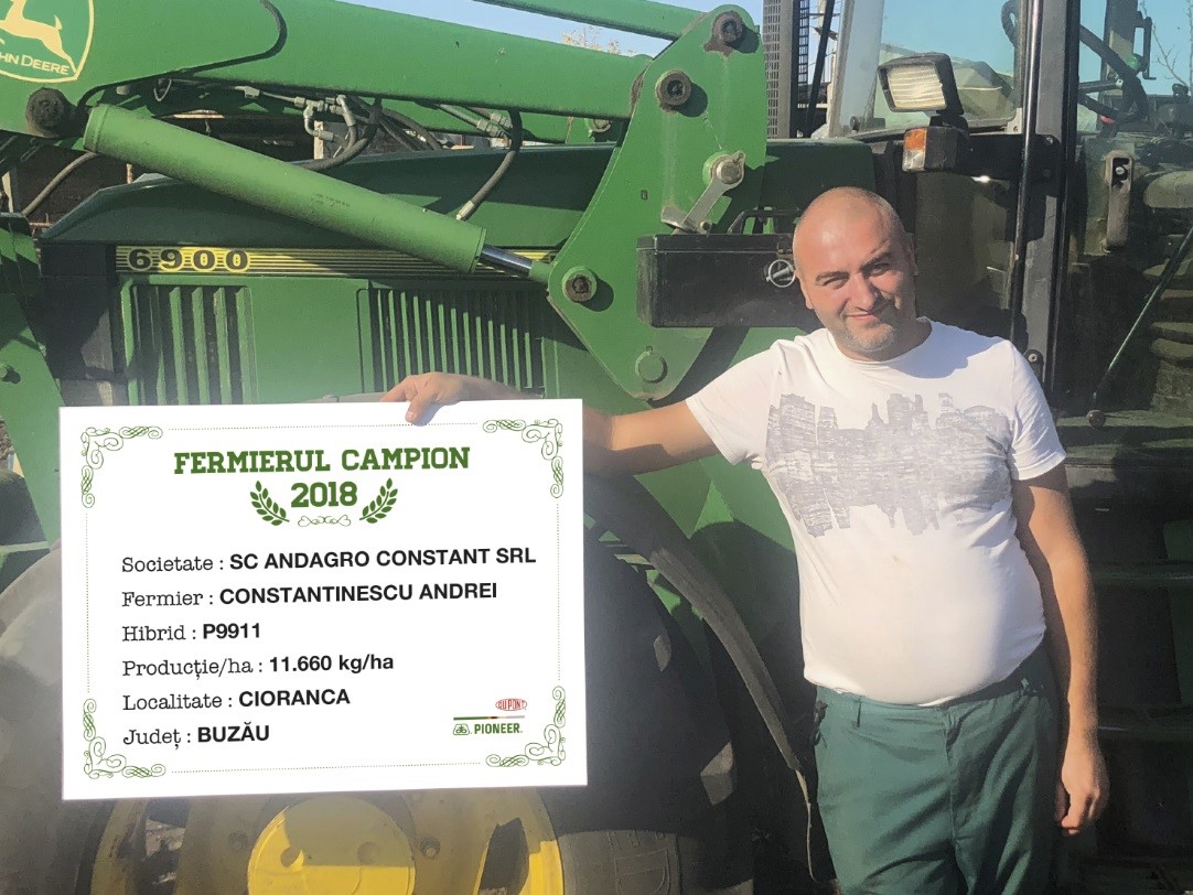 Fermier campion la cultura porumbului este și Andrei Constantinescu din localitatea Cioranca. Acesta a semănat porumb pe 200 hectare, iar hibridul P9911 i-a garantat 11.660 kg/ha. “Ca în cazul celorlalte culturi din fermă, sunt adeptul multor lucrări în vegetație, astfel că în ceea ce privește cultura de porumb, am arat în toamnă, în primăvară am pregătit patul germinativ și am aplicat îngrășăminte, apoi am incorporat cu combinatorul, am semănat la circa 2 săptămâni 70.000 plante/ha și am aplicat îngrășăminte complexe 20.20.0, plus 9 kg/ha îngrășământ starter. Am aplicat un singur erbicid și aceasta a fost toată tehnologia. Anul viitor voi semăna porumb pe aproximativ 130-140 ha”, a punctat agricultorul.