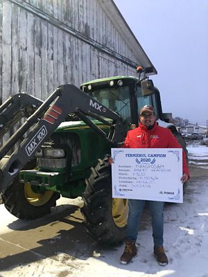 Fermierul Cătălin Pentilescu din localitatea Frumoasa, județul Suceava a devenit și el fermier campion la cultura porumbului deoarece în campania 2020 a obținut 13.090 kg/ha cu hibridul P8834. Acesta lucrează 120 ha, pe 58 ha a semănat porumb, iar hibridul P8834 a fost semănat după cereale. “Am avut și monocultură, însă acest hibrid a fost semănat după cereale. Astfel, terenul a fost arat, apoi pregătit cu combinatorul într-o trecere și am semănat în cea de a doua jumătate a lunii aprilie. La semănat am administrat îngrășământ complex 20.20.0, 280 kg/ha, dar și 18-20 kg/ha de îngrășământ starter, iar în vegetație, atunci când plantele aveau 10-12 frunze, pot spune că la limită am intrat, am aplicat uree – 180 kg/ha. Am erbicidat o singură dată în stadiul de 4-6 frunze, am recoltat la mijlocul lunii octombrie și pot spune că a fost un an foarte bun! Am fost și ajutați de vreme și am avut o producții foarte bune”, a punctat fermierul campion.