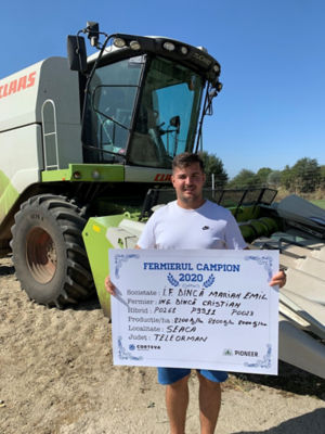 Domnul inginer Cristian Dincă din localitatea Seaca, județul Teleorman, a obținut în acest an rezultate remarcabile la porumb și floarea-soarelui. A ales să semene trei hibrizi Pioneer® – P0268, care i-a oferit o producție de 8.200 kg/ha; P9911, la care o obținut 8.100 kg/ha și P0023 care i-a adus 8.000 kg/ha.