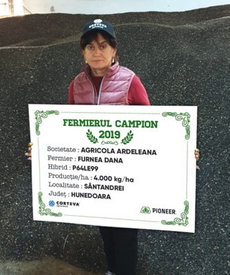 Doamna Dana Furnea, din județul Hunedoara, a cultivat în acest an hibridul P64LE99 și a obținut 4.000 kg/ha. “Lucrăm 300 ha, iar floarea-soarelui am avut în acest an pe 55 ha, semănate după porumb. Am arat terenul în toamnă și am administrat gunoi de grajd, iar în primăvară am pregătit terenul cu discul, în două treceri, și am aplicat azot – 100 kg/ha. Am semănat la începutul lunii aprilie, am administrat erbicidul Express® 50 SG și un fungicid. Nu am prășit și nici nu am mai administrat altceva, a fost un an mai bun pentru P64LE99, față de P64LE25, însă este clar că în acest an a contat foarte mult și faptul că a plouat la timp. Anul viitor vom semăna floarea-soarelui pe 70 ha și vom alege hibridul P64LE99”, a declarat doamna Furnea.
