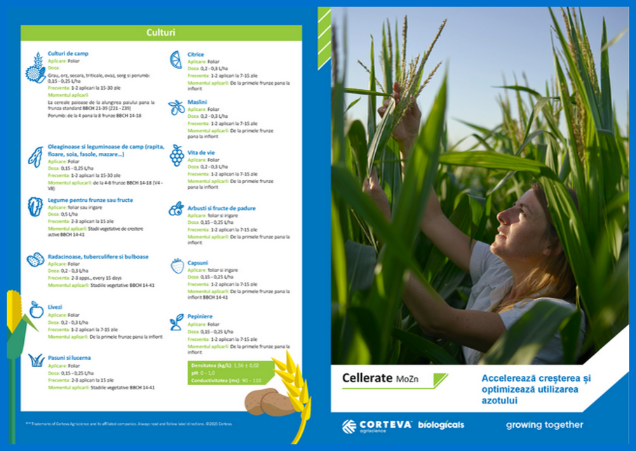 Cellerate® MoZn este un fertilizant foliar cu rol biostimulator pentru îmbunătățirea absorbției azotului și accelerarea creșterii în fazele vegetative incipiente ale dezvoltării plantei de cultură.