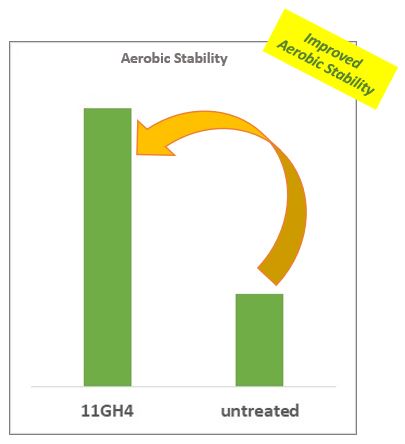 Furajele însilozate tratate cu Pioneer® 11GH4 prezintă, în comparație cu cele netratate, un nivel mai mare de stabilitate aerobă și pierderi total reduse. Cantitățile mai mari de acid acetic din furajele însilozate reduc drojdiile și mucegaiul și îmbunătățesc stabilitatea aerobă.
