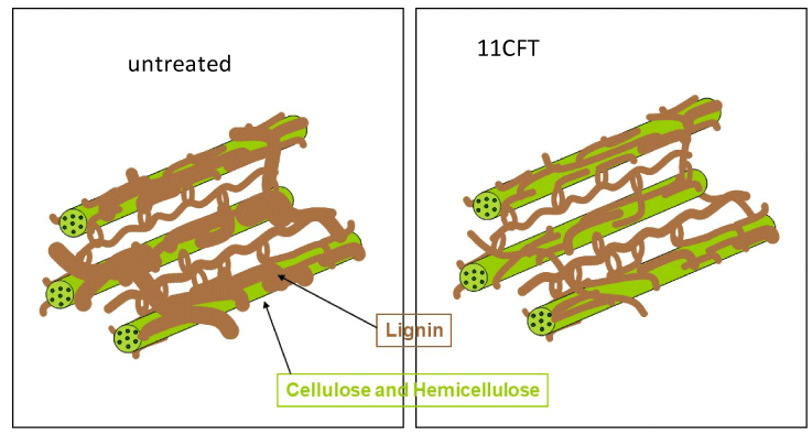Pioneer® 11CFT conține Lactobacillus buchneri LN40177 unic în lume și este inoculantul ideal pentru porumbul cu nivel ridicat de lignificare. Lignina din tulpină poate fi destructurată prin acțiunea enzimelor de ferulat-esterază eliberate de inoculantul Pioneer® 11CFT. Acidul acetic eliberat în timpul însilozării îmbunătățește stabilitatea aerobă și tulpinile homofermentative prezente îmbunătățesc fermentarea prin producția de acid lactic.