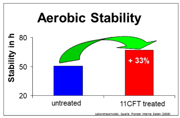 PIONEER® 11CFT: prin eliberarea controlată de acid acetic în timpul fermentației, stabilitatea aerobă a fost îmbunătățită semnificativ.