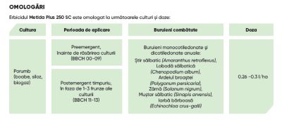 • În caz de cultură calamitată tratată cu erbicidul Metida Plus 250 SC în primăvară, se poate cultiva porumb, după o arătură la o adâncime de 20 cm.
