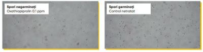 • Poze făcute la 4 ore după adăugarea zoosporilor Plasmopara halstedii în soluție la 200 C. Inițial concentrația de zoospori a fost identică în ambele soluții.