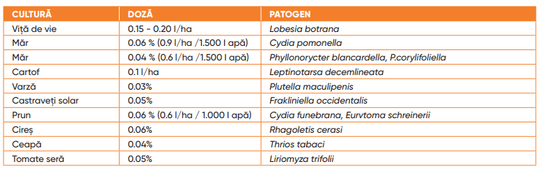 • Combate dăunători din ordinele: Lepidoptera, Diptera, Hymenoptera, Coleoptera, Thysanoptera, lsoptera.