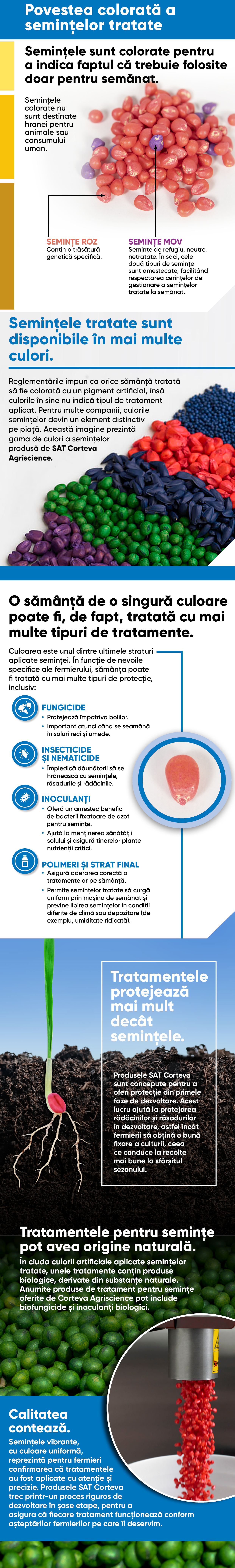 Albastru strălucitor, verde smarald și roz șocant: acestea sunt doar câteva dintre culorile pe care le puteți vedea în fiecare primăvară în cuvele semănătorilor din ferme. Culoarea semințelor are un rol important, indicând faptul că semințele au fost tratate și sunt destinate exclusiv semănatului. În spatele acestor culori strălucitoare se ascund și câteva idei strălucite care ajută semințele să aibă un start puternic.
