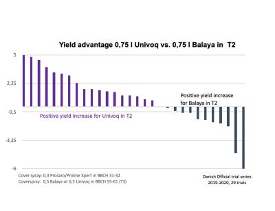 Resultater från danska officiella försök 2019-2020 visar att Univoq överträffar Balaya i 18 av 29 försök.