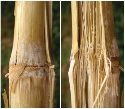 Şekil 3: Hem Fusarium hem de Gibberella sap çürüklüğü belirtileri olan kırık sap