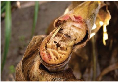 İç sapın özü, sadece vaskular demetleri sağlam bırakarak bozulabilir. Boğum plakası bozulur ve çürür.