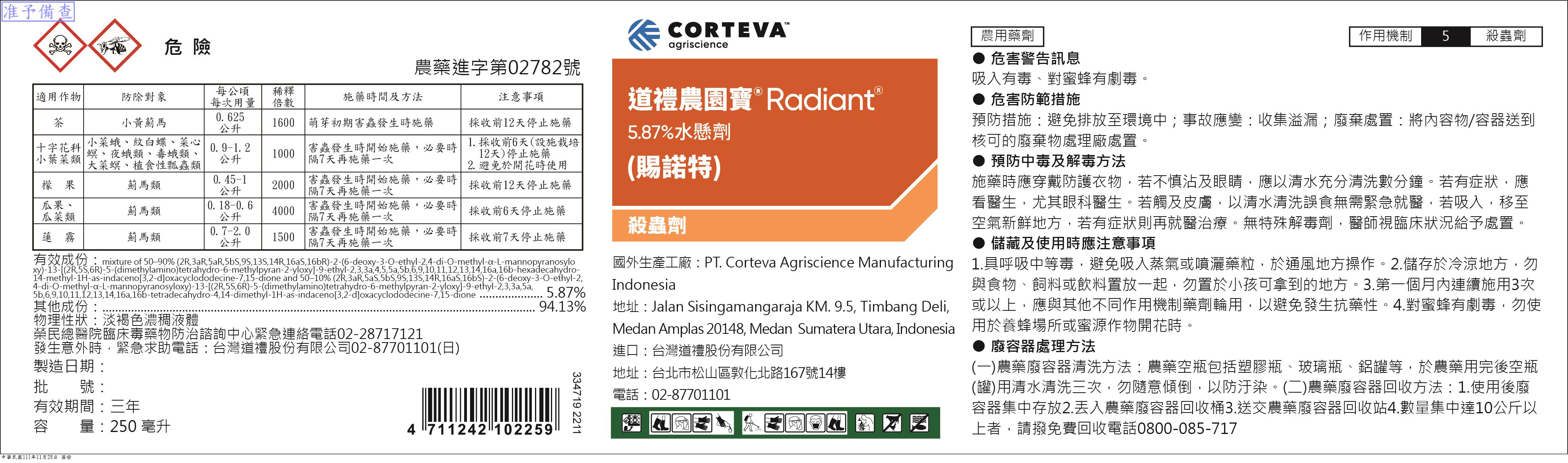 有效成分為賜諾特(Spinetoram) ,具有系統性與滲透性,防治躲藏在樹冠與葉背的害蟲,且不易產生交互抗性。