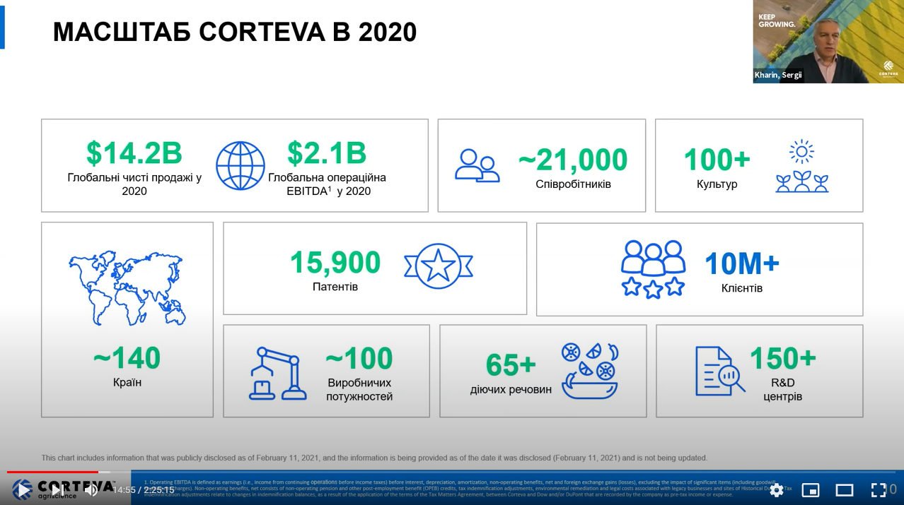 Покращення показників багато в чому пов’язане із розвитком сільського господарства, зокрема, виробничою та дослідницькою активністю міжнародних сільськогосподарських компаній. «Світ потребує не тільки більше їжі, але й здоровішої, поживнішої та виробленої безпечними для планети способами. Для цього компанія Corteva Agriscience розробляє та пропонуємо інновації, щорічно інвестуючи в наукові розробки близько 1 мільярда доларів США, – зазначив Сергій Харін, керівник бізнесу Corteva Agriscience у Східній Європі. Компанія працює в понад 140 країнах світу, маючи майже 100 виробничих комплексів та понад 150 науково-дослідницьких центрів, в том числі в Україні, де провідні науковці працюють над інноваційними інтегрованими рішеннями для задоволення потреб фермерів та надання їм допомоги у вирішенні викликів, пов’язаних із забезпеченням продовольчої безпеки світу. На сьогоднішній день Corteva має майже 16 000 патентів та понад 65 власних діючих речовин. «Ми працюємо, слідуючи нашому призначенню – збагачувати життя тих, хто виробляє, та тих, хто споживає, забезпечуючи розвиток наступних поколінь, і наша стратегія сталого розвитку передбачає впровадження ініціатив, які сприятимуть загальному покращенню продовольчої безпеки і надалі», – пояснив пан Харін.