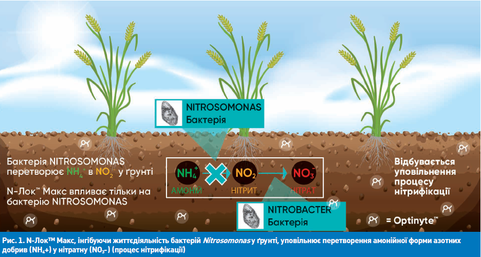 Так, портфоліо компанії Corteva поповнив інгібітор нітрифікації N-Лок™ Макс, що містить у своєму складі 300 г/л нітрапірину та рекомендований до застосування в нормі 1,7 л/га. Препарат N-Лок™ Mакс допомагає зберегти азот, внесений із мінеральними добривами, в стабільній амонійній формі 4–8 і більше тижнів та сповільнити його перехід у нестабільні нітритну й нітратну форми, зменшуючи таким чином втрати азоту внаслідок вимивання та денітрифікації. Це, своєю чергою, спричиняє подовження активного періоду доступності азоту для рослин. Нітратна форма азоту буде доступна культурі саме в критичні фази її росту та розвитку, отже, використання стабілізатора азоту N-Лок™ Mакс підвищує ефективність азотних добрив і сприяє примноженню врожайності сільськогосподарських культур у середньому на 5–7%, що підтверджено польовими випробуваннями. N-Лок™ Mакс можна застосовувати з усіма типами азотних мінеральних добрив: гранульованими (карбамід, аміачна селітра, сульфат амонію та ін.) та рідкими (КАС, аміачна вода). Інгібітор нітрифікації рекомендовано вносити у весняне підживлення озимих зернових культур (після відновлення їхньої вегетації) одночасно з рідкими добривами або окремо обприскувачем з мінімальним проміжком між внесенням добрив (інгібітор нітрифікації не можна застосовувати по мерзлоталому ґрунту). N-Лок™ Mакс не замінює азотних добрив. Він допомагає зберегти та пролонгувати їхню дію.