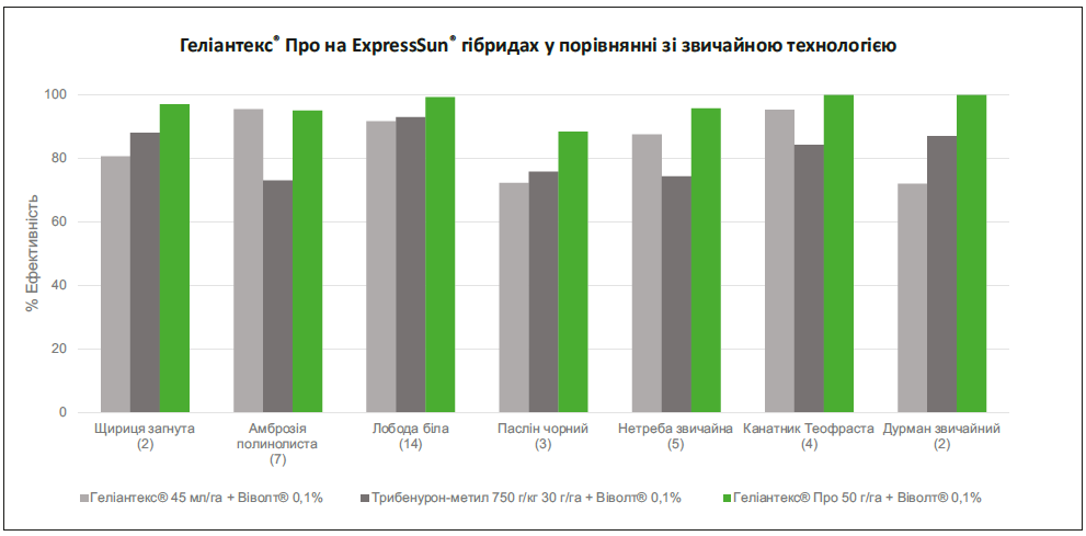 Таким чином, поява Геліантекс® Про на ринку України відкриває перед агровиробниками нові можливості у захисті соняшнику ExpressSun®, розширюючи арсенал боротьби з ключовими видами бур’янів.