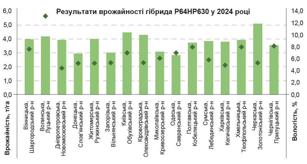 P64HP630 – високоолеїнова адаптація популярного гібрида P64LP130, що ідеально підходить для умов півдня і сходу. Зберігаючи чемпіонський рівень олійності, гібрид сприяє отриманню додаткових коштів за якісну високоолеїнову олію. Гібрид має добрий стартовий ріст та розвиток, генетично стійкий до іржі та вовчка соняшникового 7 рас (A-G).
