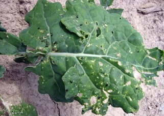 Phyllotreta atra (cabbage flea beetle) damage on OSR