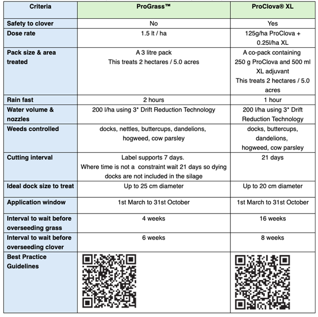 Table 1: Dock control options for use on grassland used for silage, hay or haylage, with or without clover