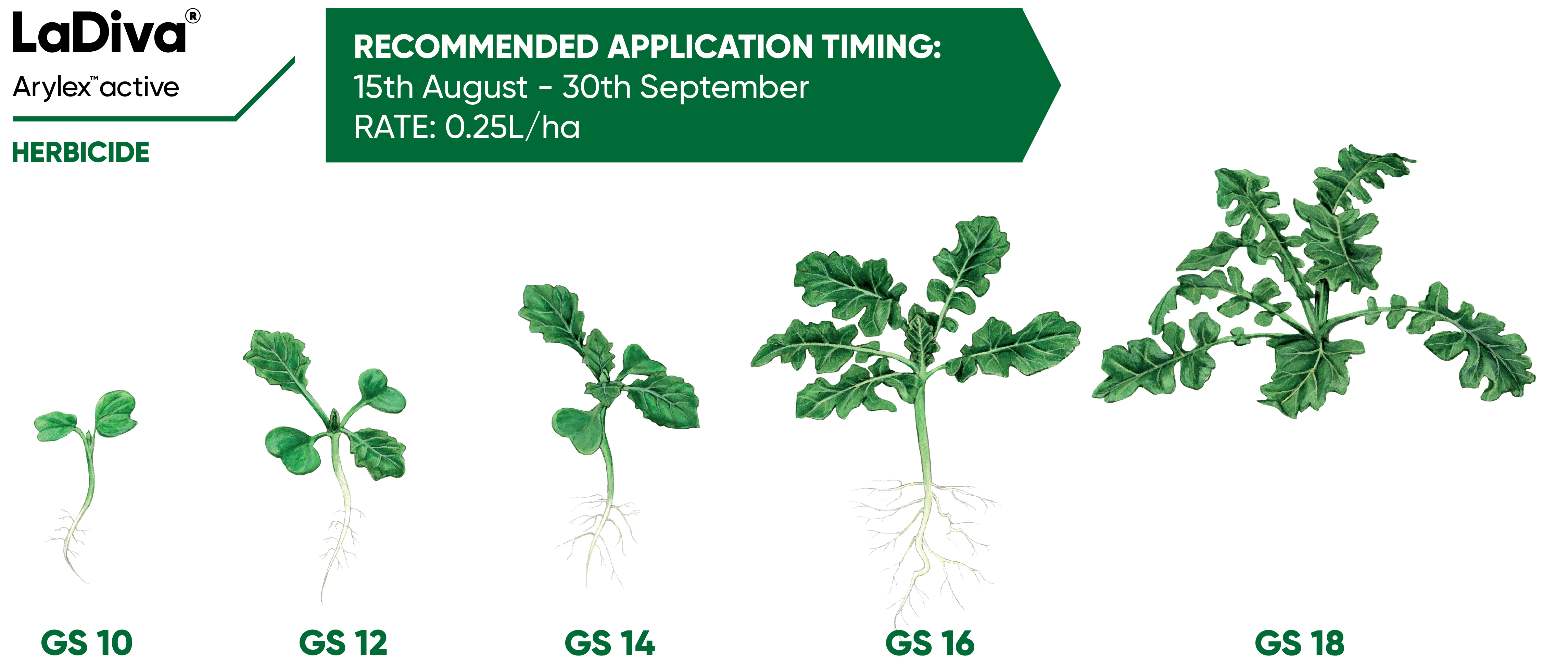 LaDiva contains ArylexTM active, together with aminopyralid and picloram. It delivers reliable and robust control of key problem weeds with an early application window from 15th August.