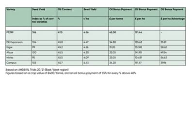 Choose PT299 for the highest oil content of any variety in AHDB RL Trials and superior RLM 7 enhanced stem canker resistance.