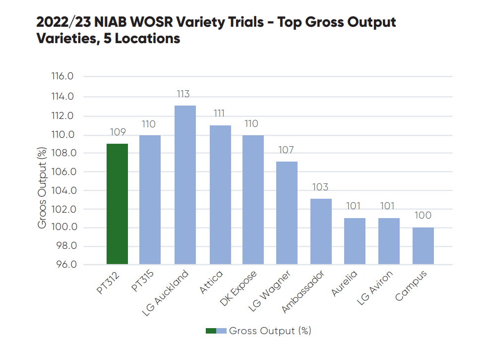 PT312 has given a very high gross output yield of 109% in NIAB trials.