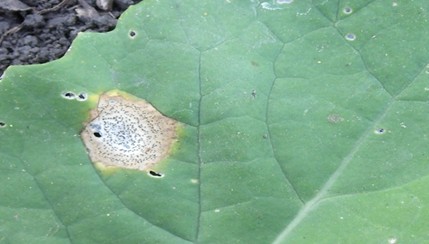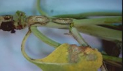 From the leaf, the pathogen will spread along the leaf petiole to the stem, entering the plant’s tissue and killing the cells.