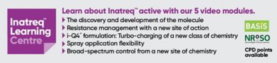 Innovative new chemistry is vital to protect crops. Inatreq active offers outstanding biology performance, allowing farmers to control the diseases which hit yields. It also plays a vital role in broadening the crop protection toolbox, helping protect other products which are being challenged by resistance. The chemistry shows no cross-resistance to other chemistries and farmers will benefit from its flexible application characteristics and consistent, broad-spectrum performance.