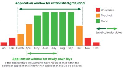 For optimium results, spray when overnight temperatures are forecast to be above 80C for a period from 3 days before to 3 days after proposed application date. Use Temperature Check, which can be found in the Best Practice section of the Corteva Forage App.
