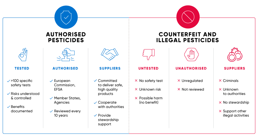 However, there is a growing number of counterfeits and illegal products on the market. These illicit products compromise sustainable agriculture and also pose an unacceptable risk to human and environmental health. At Corteva, we have a global anticounterfeiting strategy to protect our customers and our brands.