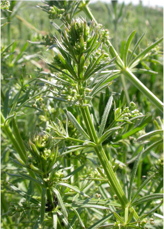 Cleavers (Galium aparine) are characterised for its ‘sticky’ seeds. Common in hedgerows it is introduced to fields via fur and clothing as well as contaminated seed.