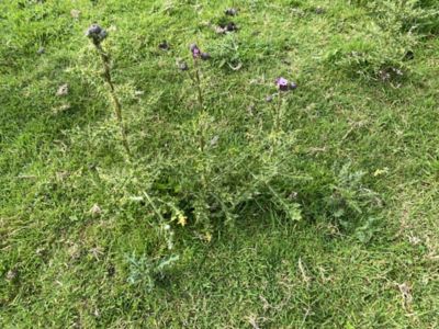 Creeping thistle (perennial dicotyledon) is a common weed throughout the UK, growing up to 150cm in height. Creeping thistles tolerate a range of soil types and respond to the use of nitrogen fertilisers. It does set seed, with the thistledown characteristically blown in the wind, though the seed viability is approximately 3%.
