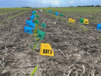 Quinn worked with a farmer last spring, placing different colored flags by plants that emerged a few days later. When they examined those plants before harvest, the later emerging plants were small, spindly, with no ear—no different than a weed that competed for water, sunshine and nutrients.